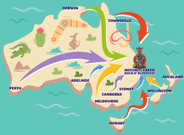Fans are travelling from every corner of Australia and beyond – from Tasmania to Darwin, Perth to Sydney, and even across the ditch from NZ. Whether you’re a long-time festival family member or joining us for the first time, we can’t wait to welcome you to the Creek!